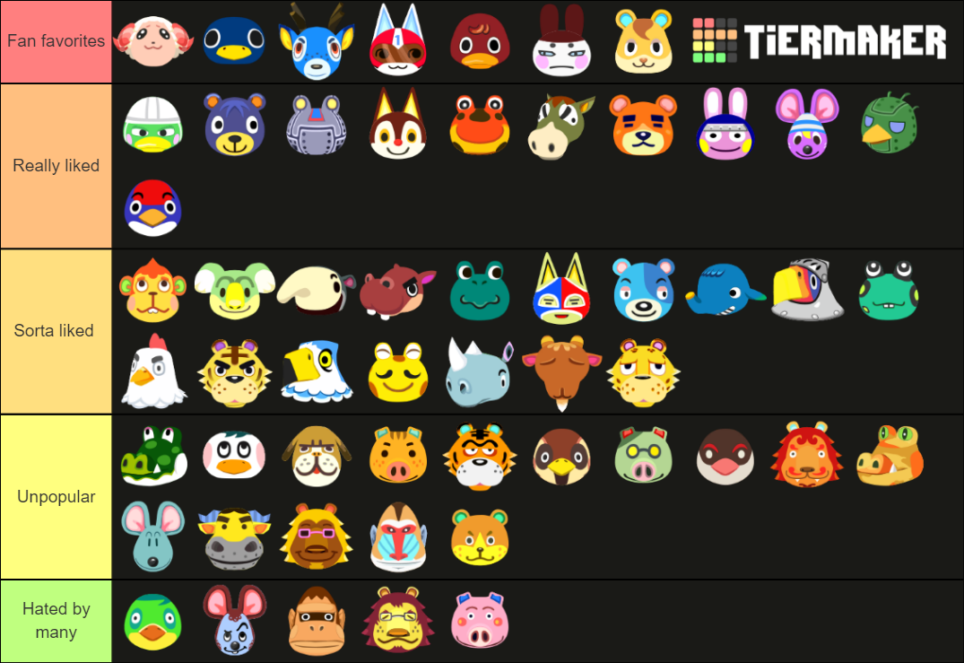 Animal Crossing Tier List Templates Tiermaker